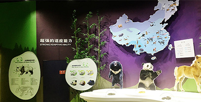中國保護大熊貓保護科普中心館內運用了多點觸控查詢、投影互動沙盤、球幕互動投影、紗幕投影等多媒體技術生動立體的展示了臥龍大熊貓保護基地詳細情況和獲得的重大成就。
