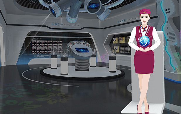 全息虛擬主持人、虛擬解說員現在是非常流行的全息投影產品,這類產品主要是利用三維動畫(高清摳像拍攝)、人機交互式紅外傳感裝置、全息顯示器、投影儀背投等技術實現的。現在越來越多的數字展廳都選擇使用虛擬主持人來代替主持人,全息虛擬主持人具有許多真實主持無法實現的優勢。